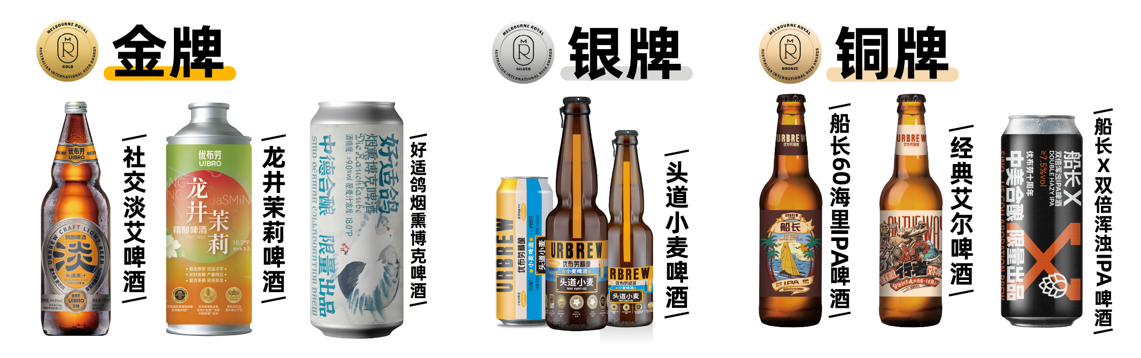 优布劳本次参赛的获奖产品,有脍炙人口的德式小麦,也有老炮钟爱的烟熏博格,有张扬豪迈的社交淡艾,也有含蓄内敛的龙井茉莉。具体获奖信息如下:
